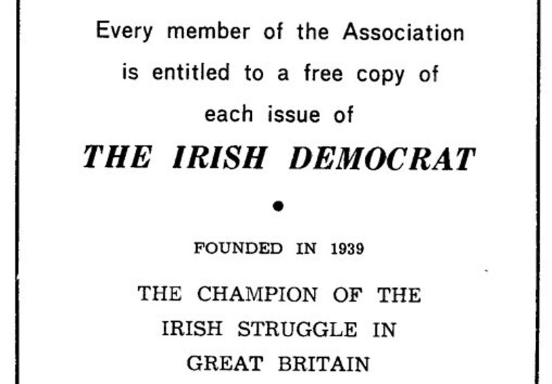 The Connolly Association was established in 1938 among Irish socialists in Britain. Campaigning mainly through the trade union movement, the Connolly Association aimed both to promote the interests of Irish workers in Britain, and to seek Irish reunification. Its founding watchword implored the Irish in Britain to establish class unity for the cause of labour and of the Irish republic. The Connolly Association’s founding cohort included former International Brigadiers who had fought for the republic in the Spanish Civil War: one of the Association’s first campaigns was to demand that General Franco’s fascist regime release Frank Ryan. By 1940, it had branches in London, Wealdstone, Wellingborough, Manchester, Liverpool, Birmingham, Newcastle, Glasgow, Coatbridge, and Portsmouth. The Birkenhead-born Communist Party activist and historian C. Desmond Greaves joined the Association the following year, and proceeded to become its leading activist, serving until his death in 1988.