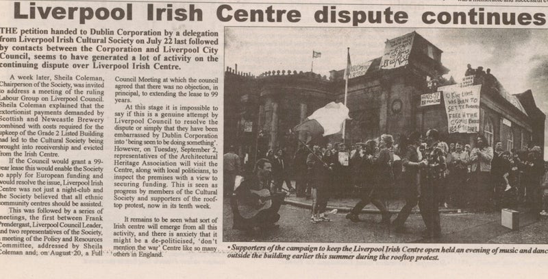 Liverpool’s Irish community has deep-rooted ties with the labour movement on Merseyside, as well as with the politics of Irish nationalism and republicanism. In the early 1970s, Liverpool Irish Centre regularly coordinated fundraising for families displaced by the conflict in Northern Ireland. By 1972, the Liverpool Irish had donated more than £2,000 to the Innocents' Dependents' Fund coordinated by prominent Catholic clerics such as Father Denis Faul of Dungannon, County Tyrone.